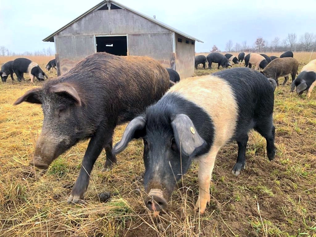 Das Gut Hirschaue liegt im Speckgürtel von Berlin und wurde 1992 von der Familie Staar gegründet. Inzwischen hat Hartmut Staar den Bioland-Betrieb an die zweite Generation in Form seiner Söhne Henrik und Michael übergeben. Ursprünglich konzentrierte sich der Betrieb auf die naturnahe Haltung von Rot- und Damwild in weitläufigen Wildtiergattern. Die Haltung von Sattelschweinen kam erst einige Jahre später hinzu, um mit deren Speck die Rezepturen aus magerem Wildfleisch aufwerten zu können. Aus einer Kreuzung zwischen Wildschwein-Ebern und Sattelschwein-Sauen entstand so das einzigartige “Märkische Sattelschwein”.