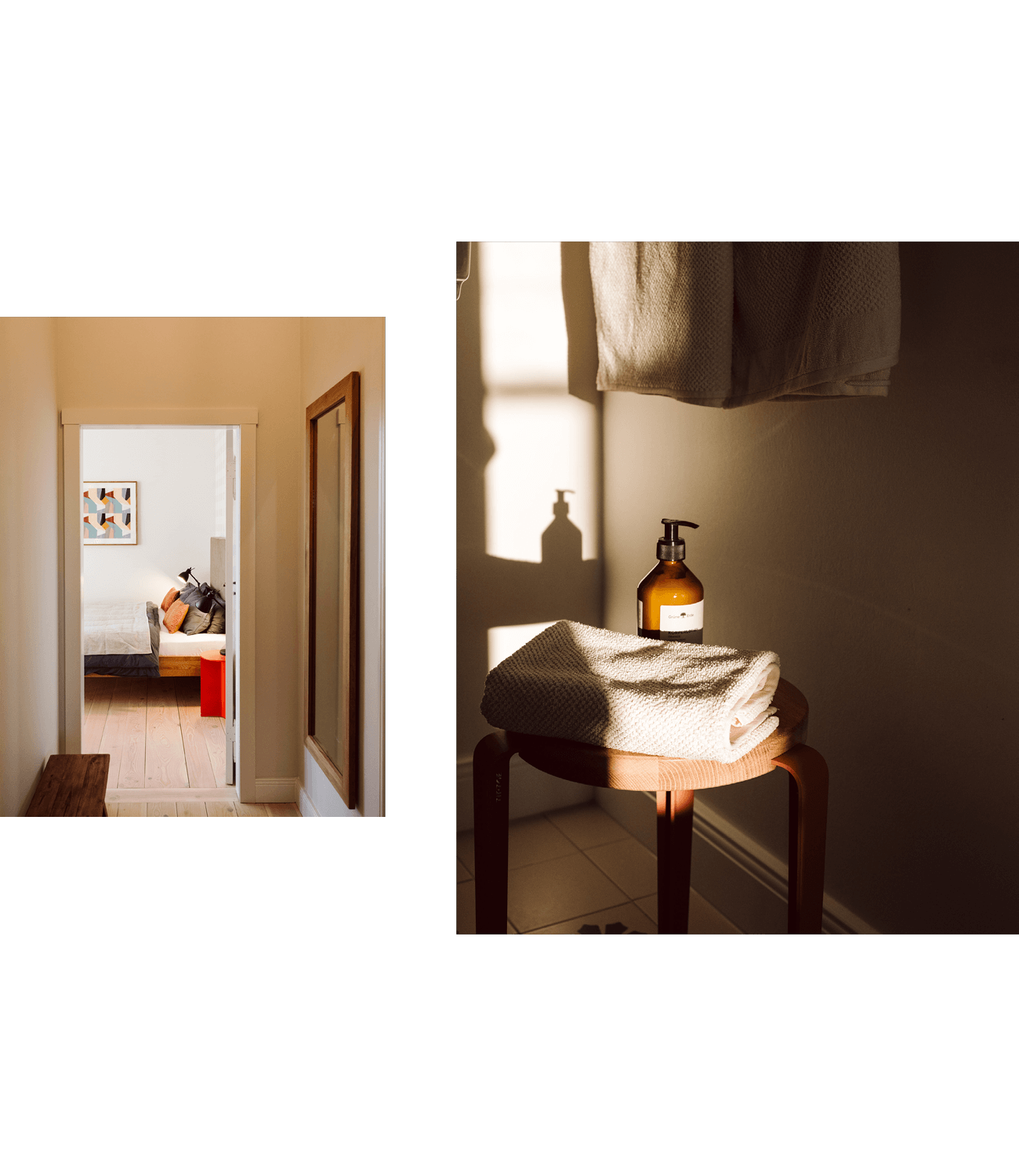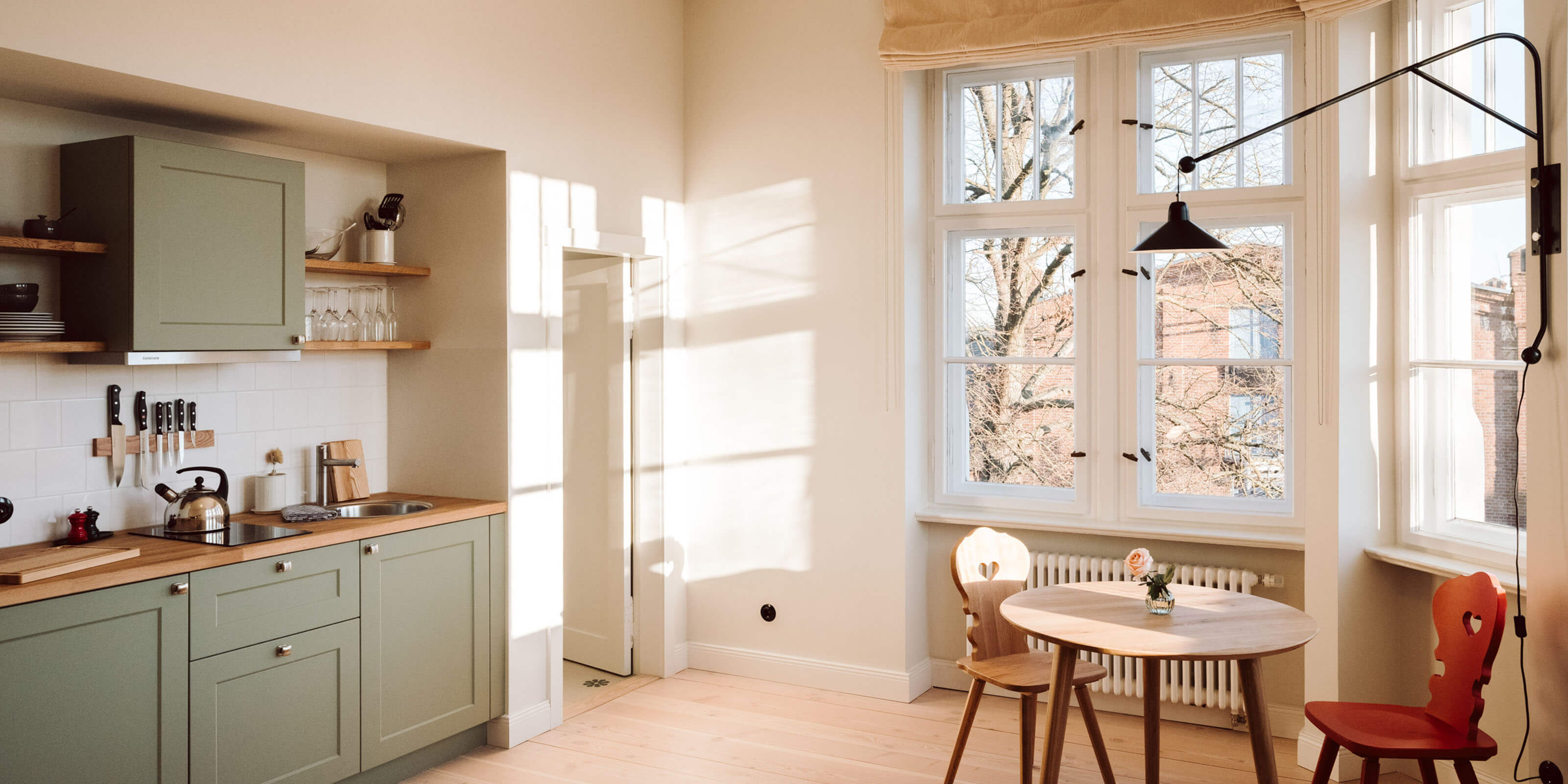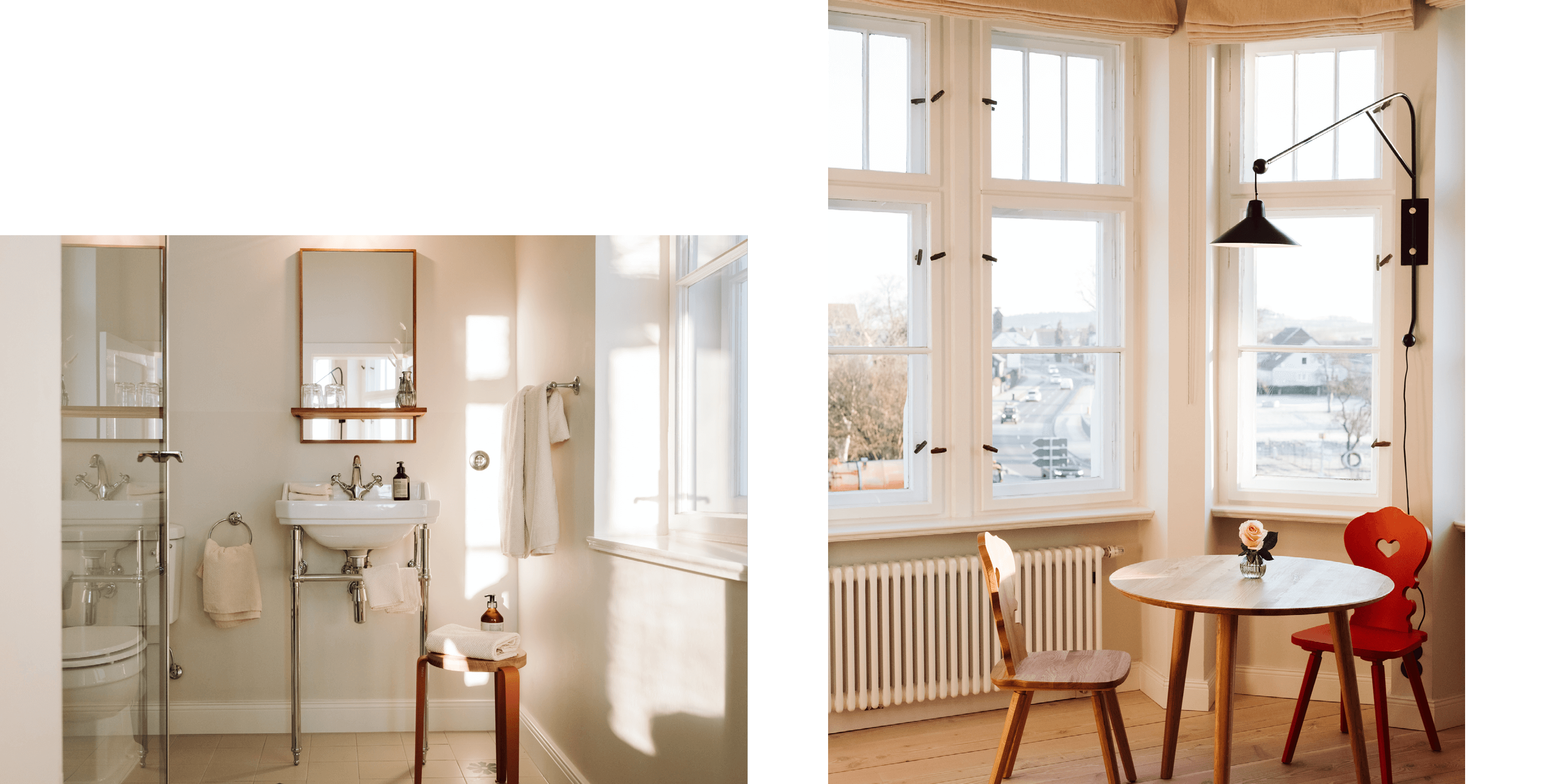 Die Apartments Hofblick und Kirchblick teilen sich einen Flur mit eigener Tür. So eignen sie sich in Kombination auch für zwei Paare oder Eltern mit Kindern, die getrennt schlafen möchten.