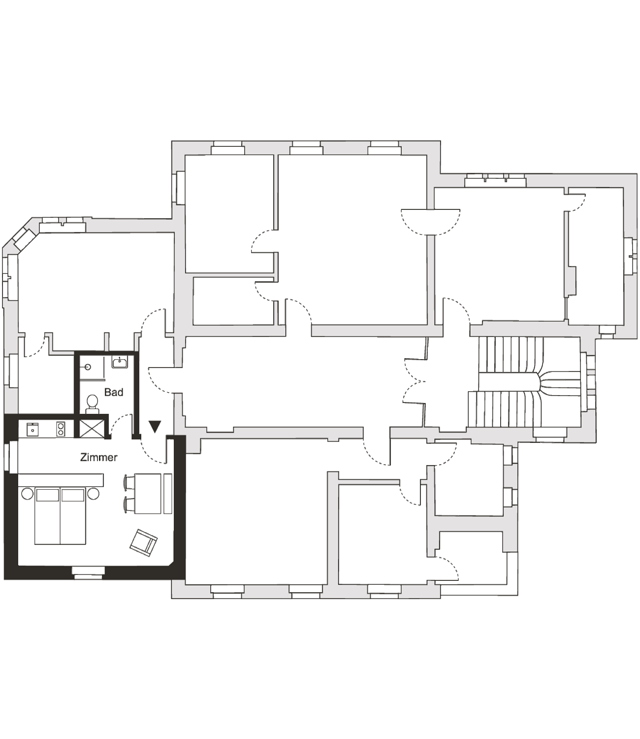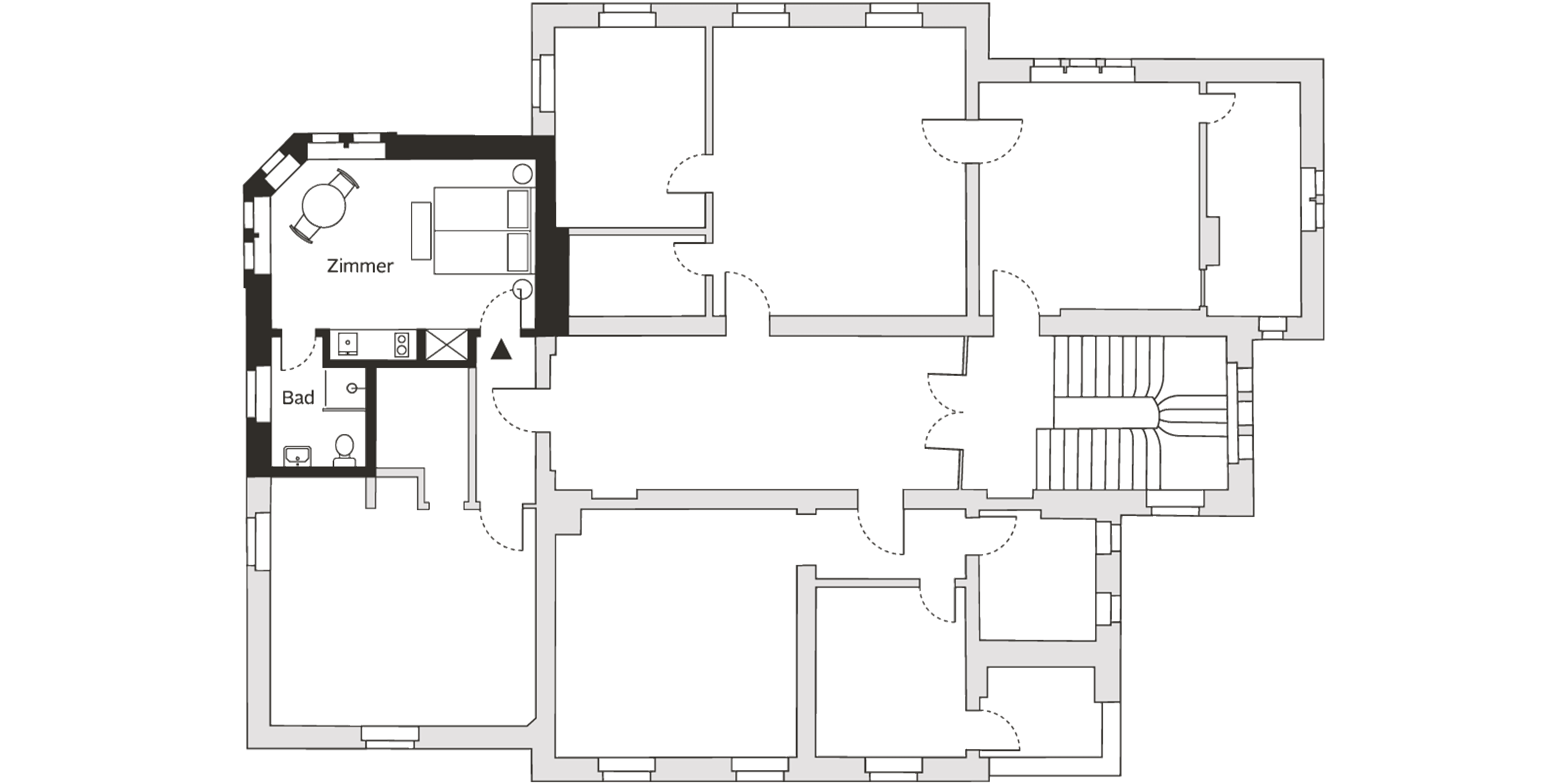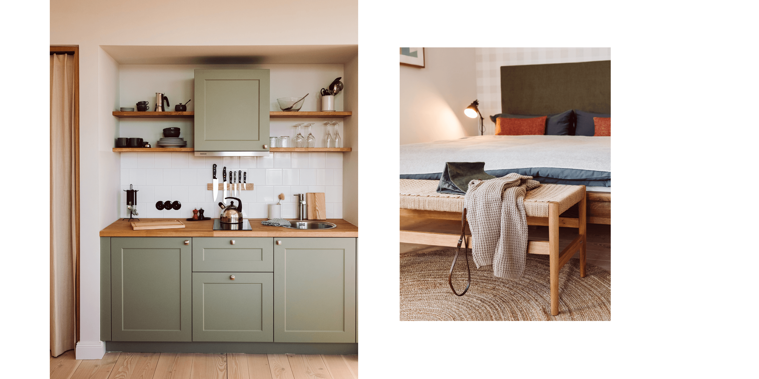 Die Apartments Hofblick und Kirchblick teilen sich einen Flur mit eigener Tür. So eignen sie sich in Kombination auch für zwei Paare oder Eltern mit Kindern, die getrennt schlafen möchten.