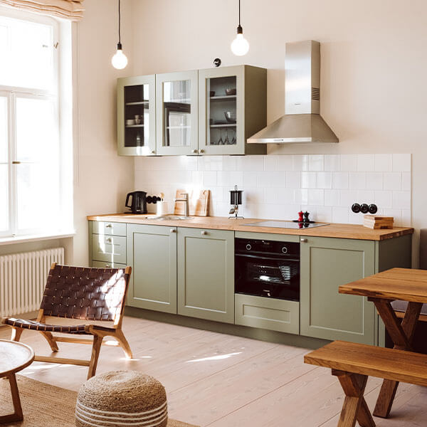 Alle Ferienwohnungen verfügen über eine eigene Kitchenette. Eine voll ausgestattete Küche kann bei Bedarf dazu gebucht werden.