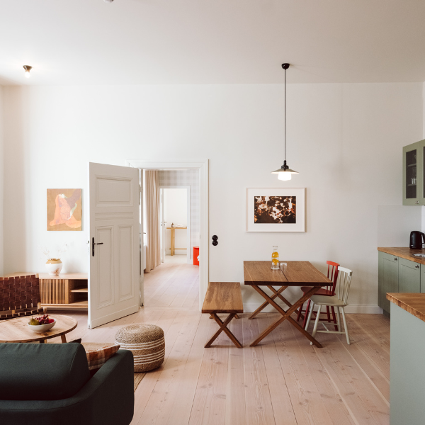 Eine hochwertige Ausstattung, natürliche Materialien, helle Räume und warme Farbtöne bestimmen den Charakter unserer acht Apartments, von denen jedes seinen individuellen Charme entfaltet.