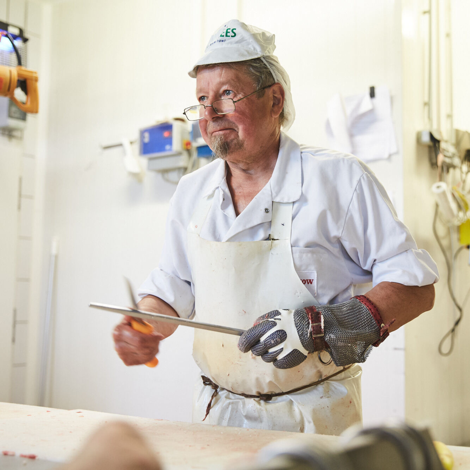 Aus Respekt vor dem Tier sollten stets alle verwertbaren Teile verarbeitet werden. Diese Ganztierverarbeitung bedingt, dass nicht nur die sogenannten Edelteile ausgelöst werden, sondern nach handwerklicher Tradition auch hochwertige Wurstwaren entstehen. Hier muss gar nichts neu erfunden werden. Ein Blick in alte Rezeptbücher genügt, um das Fleischerhandwerk hochleben zu lassen und natürliche Produkte in erstklassiger Qualität herzustellen. Da bei unserer Wurstproduktion größere Chargen entstehen, bei der mehrere Tiere verarbeitet werden, kann hier aktuell noch kein Bezug zum Weideschuss garantiert werden.